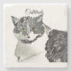Watercolor painting. This is a painting of my cat Kit Cat. He had a way of getting you to do what he wanted. He would go into the kitchen when he was hungry and open then slam a cupboard door, he would keep doing it until we fed him. He never missed a meal. May this design remind you to enjoy your forever friend's unique personality, as you use this coaster.