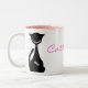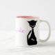 This mug has real cattitude, with a black cat silhouette that has a fish bone in it's belly, and a pink polka dot collar on. Makes a cute gift for any cat lover.