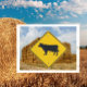 Cattle Crossing Sign, Baled Stacked Hay Postcard