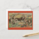 Cattle centred, surrounded by farm animals, and jockeys racing horses on a racetrack above, in this beautiful farm and sport ephemera. Orange red border.