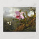 Martin Johnson Heade botanical artwork: Cattleya Orchid, Two Hummingbirds and a Beetle - postcard.