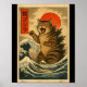 Catzilla Cat Japanese Art Funny Cat For Men Women Poster