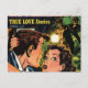 Vintage romance comic book showing a couple tightly embracing in a car. They look up startled when the police show up shining falshlights at them