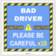 Caution Bad Driver Sign for Drivers - Blue label - A caution bad driver sticker is a type of bumper sticker that is used to warn other drivers of the poor driving skills of the person who owns the vehicle. Some people may use it as a joke, a prank, or a way to express their frustration with their own or someone else’s driving. Others may use it as a serious warning or a plea for patience from other drivers.