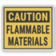 Caution Flammable Materials Sign