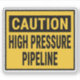 Caution High Pressure Pipeline Sign