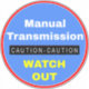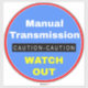This "Warning Caution Manual Transmission Watch Out" sticker clearly warns individuals to be cautious and aware of the potential dangers associated with manual transmissions. The sticker's bold text and prominent warning symbol effectively communicate the importance of paying attention and staying clear of moving vehicles.