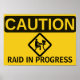 A poster best placed outside your room when raiding. It reads "caution raid in progress" with symbol of a computer work station.