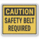 Caution Safety Belt Required Sign