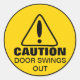 Caution Sign Door Swings Out Round Sticker. Customisable yellow round stickers with fully customisable texts "Caution" and "Door Swings Out" and triangle with exclamation mark warning. This automatic door swings out warning sticker is fully customisable, add your text and images!