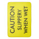 Caution. Slippery when wet sign on a bath mat.  Also works as a safety warning sign.