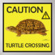 Caution turtle crossing sign. Help people keep aware that the turtles may be crossing the sidewalk, trail or walking paths. Image of a box turtle.