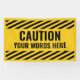 Customise this Caution or Warning banner with traditional bright yellow and diagonal stripes background to signify danger. Edit the text to any words you need.