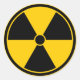 Radiation symbol sticker in black and caution yellow.