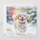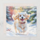 This elegant Christmas card pictures a cute Cavachon, enjoying a walk through the snow with a late afternoon sky, red berries and evergreen trees. The illustration is in an attractive watercolor style. At the top is the greeting 'Merry Christmas' in stylish script typography, while the text at the bottom can be personalised with your name(s) or other words. Full of canine charm, the card is ideal for owners of Cavachons and fellow dog lovers.