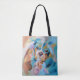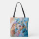 Tote bag with cavalier King Charles spaniel abstract art design.