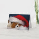 This is a Christmas Card featuring an original photo of a Blenheim Cavalier King Charles Spaniel wearing a Santa Hat. Check out the matching postage!