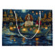 Set sail into the magic of the holiday season with this beautifully detailed illustration, showcasing a proud dog sitting in a festively decorated boat, gliding across a serene Christmas lake. The twinkling lights from nearby pine trees reflect off the water, casting a warm, festive glow that enhances the cosy ambiance. Ornaments dangle from the boat's sides, while glowing lanterns light the way, creating a scene that captures the true essence of Christmas warmth and joy. This nostalgic artwork brings a touch of holiday magic to any space, perfect for those who cherish the spirit of the season.