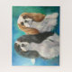 This is a 16x20, 520 piece puzzle featuring a photograph of an original painting of two Cavalier King Charles Spaniels, one Tri-colour, and the other Blenheim, sitting together with a blue/green background.