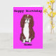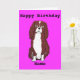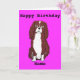 Add name front and message inside card.Lovely spaniel dog birthday card. Several background colours. Fully customisable.