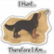 Hand-drawn Cavalier King Charles Spaniel art featuring a determined Black and Tan Cavalier King Charles Spaniel mid-hunt with the playful phrase I Hunt… Therefore I Am… This original Cavalier King Charles Spaniel design celebrates the natural instincts and confident personality of this charming breed in a fun barn hunt theme.