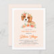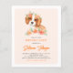 Invite guests to your event with this customisable birthday invitation. It features watercolor illustrations of a Cavalier King Charles Spaniel, and peach flowers. Personalise by adding your details. This cute Cavalier King Charles Spaniel invitation is perfect for birthdays, baby showers, and other events.