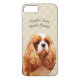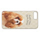 Cute cell phone case featuring an illustration of a Cavalier King Charles Spaniel. Customisable background colour and texts. Perfect gift for the dog lover or Cavalier King Charles Spaniel owner.