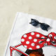 This design features a Cavalier King Charles Spaniel dog dressed in a striped cardigan, red sunglasses and with a polka dot headband.