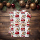 The repeated pattern on these Christmas wrapping paper sheets is an image of an adorable Cavalier King Charles Spaniel dog peeking out from a red and white Holiday gift bag. Behind him is a sprig of holly and red berries. Stylised red and black buffalo plaid text says MERRY CHRISTMAS". The background on two of the sheets in this set is white, while the third sheet is silver.