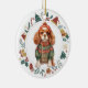 This cute Holiday ornament features a watercolor image of an adorable red and white Cavalier King Charles Spaniel puppy dressed in his winter sweater and hat. The image is framed within a colourful circle wreath made up of various Holiday images, including a snowman, bells, candy cane, stocking, holly, and more! The back of the ornament has the same wreath image with your custom text in green, gold, and red. See more Spaniel designs at Dog Village.