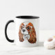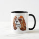 This design features a portrait of a Cavalier King Charles Spaniel wearing glasses and a bow tie on a pink background.