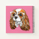 This design features a portrait of a Cavalier King Charles Spaniel wearing glasses and a bow tie on a pink background.