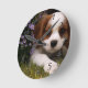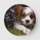 Cavalier King Charles Spaniel Puppy behind flowers Round Clock