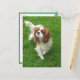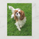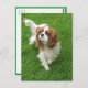 Brighten someone's day with a King Charles pup! This fun canine postcard features an image of a Cavalier King Charles Spaniel puppy dog walking in the green grass.
