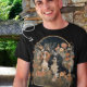 Vintage-inspired design with two elegant Cavalier King Charles spaniels - one Blenheim and one Tricolor - in a lush garden in a style reminiscent of an antique tapestry or the work of William Morris.