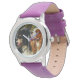 The watch looks exactly as depicted. I was especially pleased with the watch band, which is a nice quality, supple leather. I point this out because an option, which was sold out, was with a multi-colored but clearly plastic band. This is the better choice, in my view.
