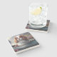 The coasters are gorgeous, a quality feel and heavy weight. They look like a precious archeological find. A rustic stone juxtaposed with a modern floral black and white print. I like the way the print goes slightly imperfect on the cut stone edges giving them a kind-of natural beauty.