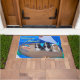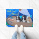 This is a doormat featuring an original photograph of three adorable Cavalier King Charles spaniels on their naughty dog sailboat.
