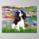 Water Lilies by Impressionist Claude Monet (1914), adapted to include a tri coloured Cavaliler king Charles Spaniel. One of many water lily paintings, this one has red or bright pink lilies in the pond. It sold at auction in 2008 for over 70 million.