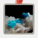 A tree ornament for a mineralogist! This is a lovely blue cavansite on a white stilbite matrix, with a black background. One of the most visually striking minerals I can think of.