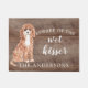 Funny beware of the wet kisser" Cavapoo Dog door mat set on a rustic faux background. Visit our shop to view a large assortment of dog breads