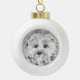 This is a quality ornament with beautiful Christmas artwork on the back. It is sturdy and very nice. The custom artwork is nice, too. I love it, and it was well received by my friends who lost their dog. Thank you for a wonderful gift. I'm sure they will cherish it forever. The only thing that was a bit of a concern was that the text underneath the image was TINY! I realize there wasn't much space to work with, so I'm not upset or anything. You can still read it. But you'll just need to have your glasses on. Also, the website was very easy to use for customizing the ornament. Great experience!