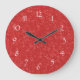 A pretty clock which features a cayenne red, mottled pattern. Numerals are in a white font style. Cute and colourful clock!