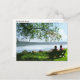 How peaceful this couple seems sitting on a shady bench on a hot summer day, admiring lovely Cayuga Lake and enjoying the gentle breeze. An overhanging willow branch provides dappled shade. The grass is a lovely shade of green and there are a few clouds in the blue sky. This postcard conveys the serenity of the day.