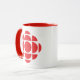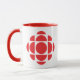 Created by Swiss-Canadian design firm Gottschalk + Ash, in a further revision of Burton Kramer's 'gem'. The red colour represents Canada in a symbolic way, the radiating form respects the DNA of the CBC brand and will not get lost in translation. Canadians would still recognise this as the CBC logo and the improved structure — fewer visual parts and colour — fits across multiple screens, legible on a mobile phone, laptop or in print and is visually less cluttered. Used from 1992 - present.