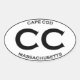 This Euro style CC - Cape Cod Massachusetts oval logo denotes Cape Cod Massachusetts. Famous for its beaches and other attractions, Cape Cod is a popular New England summer resort.