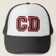 "CD" trucker hat with red and black letters