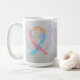 The guardian angel mug features the painting of a CDH awareness ribbon angel. CDH awareness angel ribbon art cups or mugs can be customised with personalised messages to make great cause mugs for fundraisers, awareness cup gifts, or other special events or occasions.