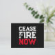 Cease Fire Now white red black distressed grunge typography anti war postcard.
