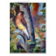 From an original oil painting by Brenda Thour of a beautiful cedar waxwing bird perched in a tree with leaves all around him. Copyright by Brenda Thour 2004.